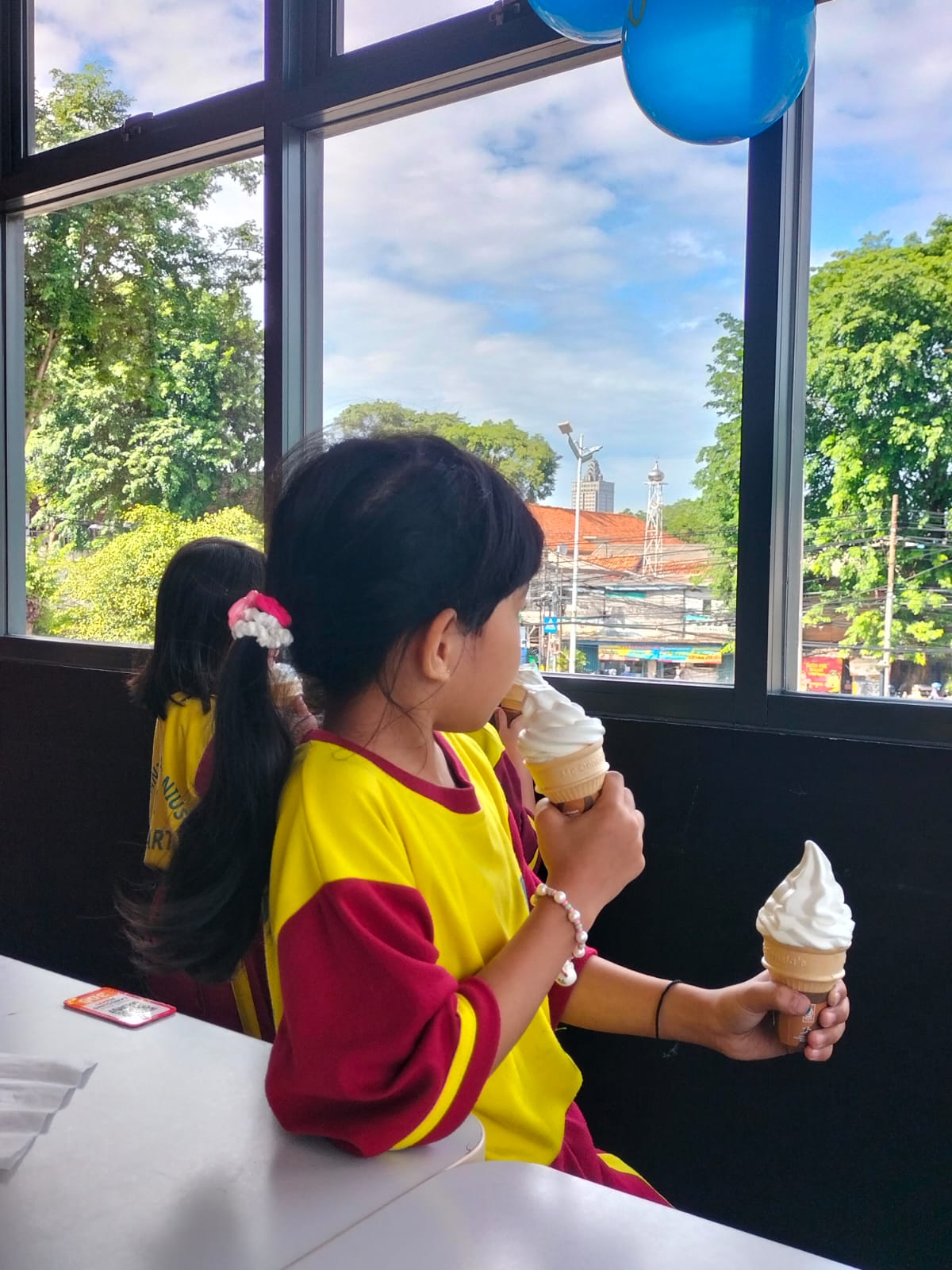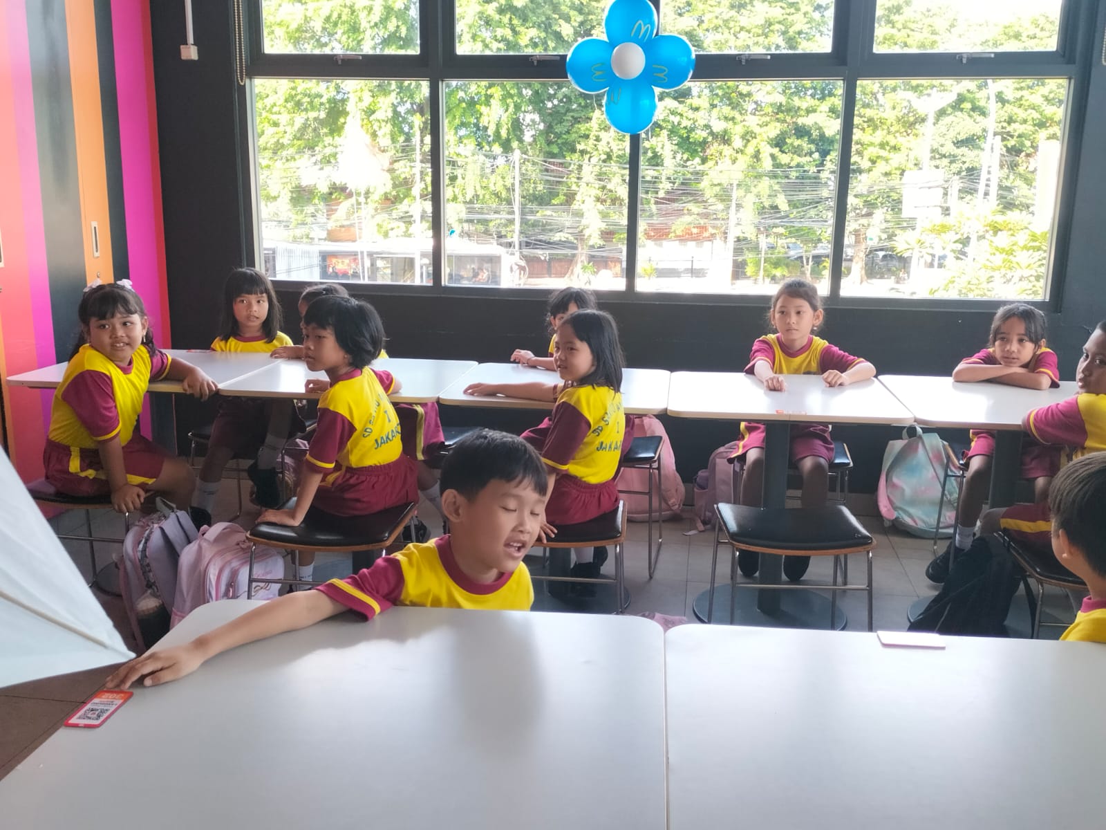 tidak jauh dari sekolah. Sesampainya di McDonald’s siswa-siswi SD Santo