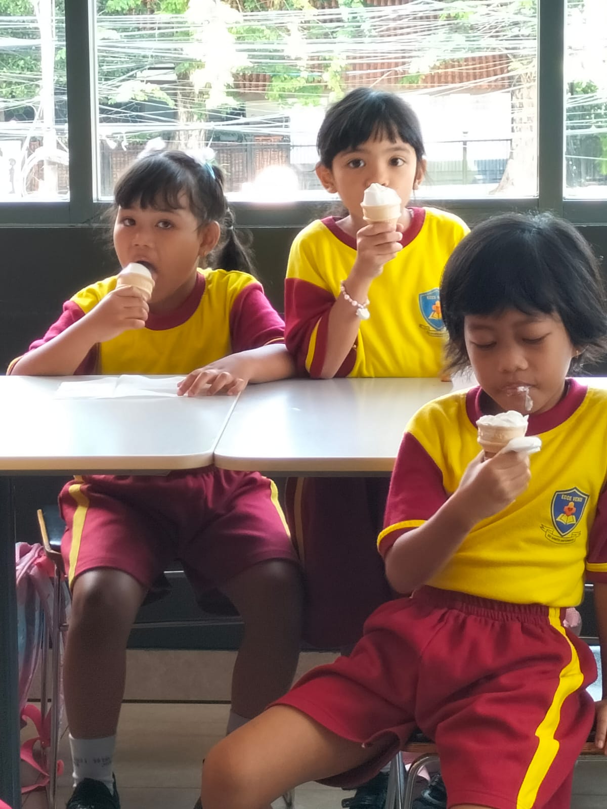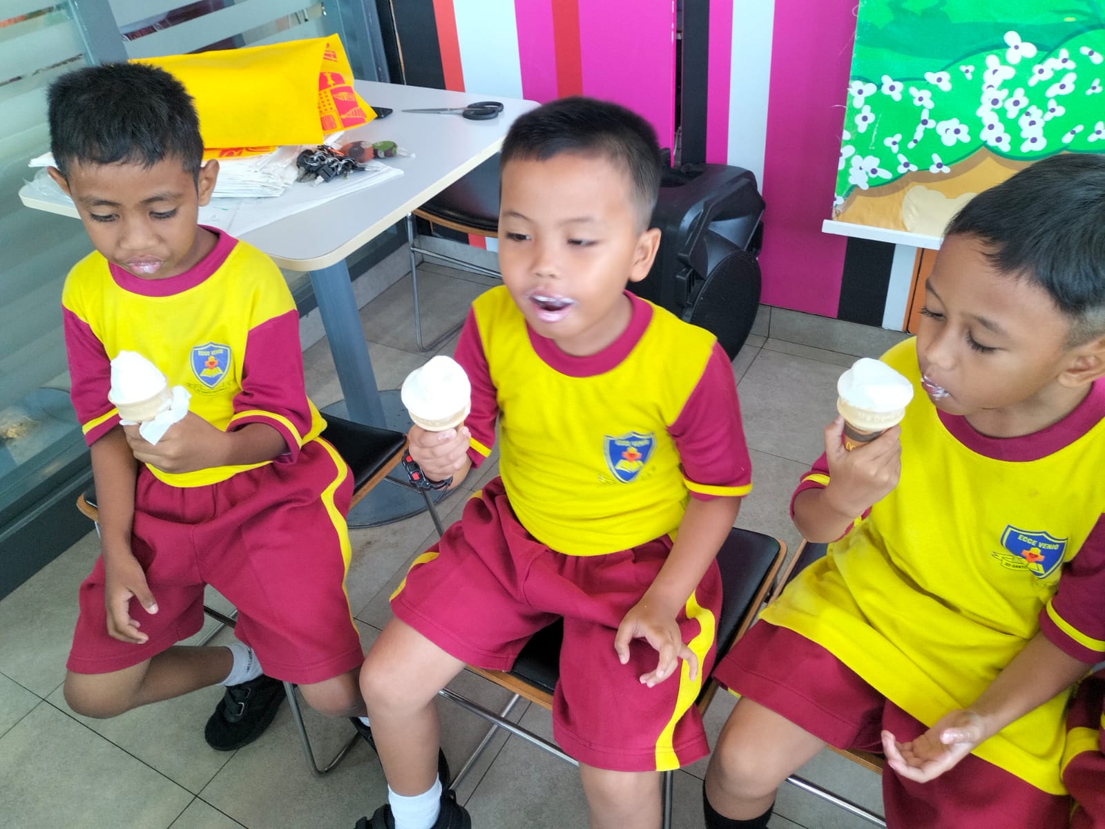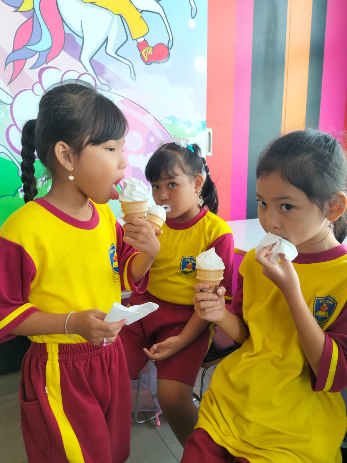 Di Area Minuman dan Pencuci Mulut, siswa-siswi diperbolehkan untuk menekan mesin es krim yang dibantu oleh ibu Intan. Siswa-siswi amat senang melihat proses es krim keluar dari mesin tersebut. Setiap siswa-siswi masing-masing mendapatkan satu es krim cone rasa vanilla. Semua kegiatan tersebut dilakukan siswa-siswi dengan antusias dan penuh semangat. Setelah selesai menghabiskan es krim, sekitar pukul 09.00 kegiatan outing class pun berakhir. Rombongan siswa-siswi kelas 1A kembali ke sekolah dengan hati riang dan gembira.