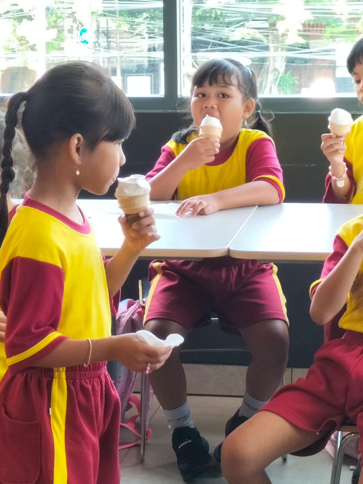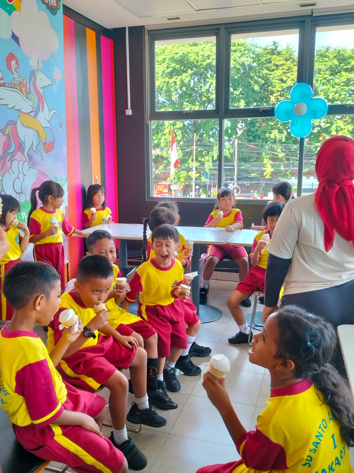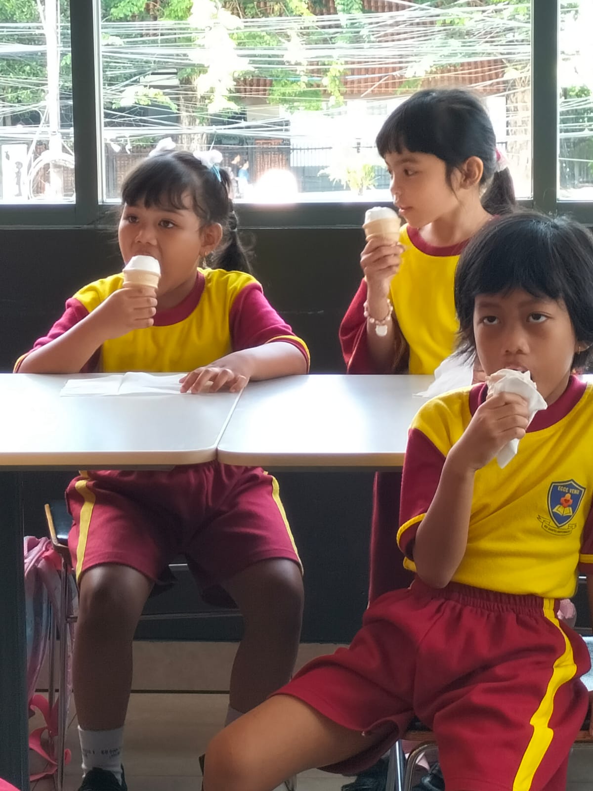 Di Area Minuman dan Pencuci Mulut, siswa-siswi diperbolehkan untuk menekan mesin es krim yang dibantu oleh ibu Intan. Siswa-siswi amat senang melihat proses es krim keluar dari mesin tersebut. Setiap siswa-siswi masing-masing mendapatkan satu es krim cone rasa vanilla. Semua kegiatan tersebut dilakukan siswa-siswi dengan antusias dan penuh semangat. Setelah selesai menghabiskan es krim, sekitar pukul 09.00 kegiatan outing class pun berakhir. Rombongan siswa-siswi kelas 1A kembali ke sekolah dengan hati riang dan gembira.