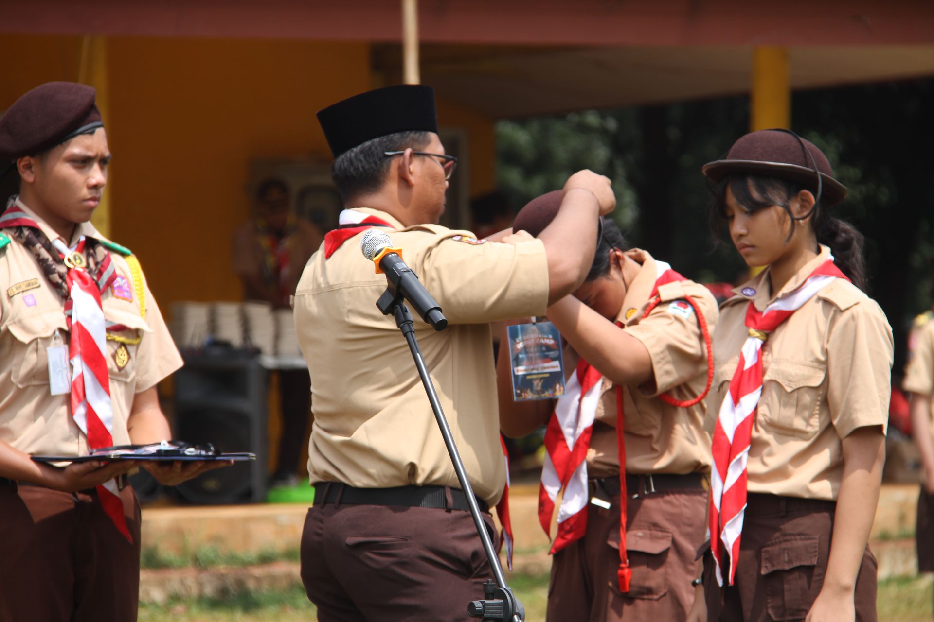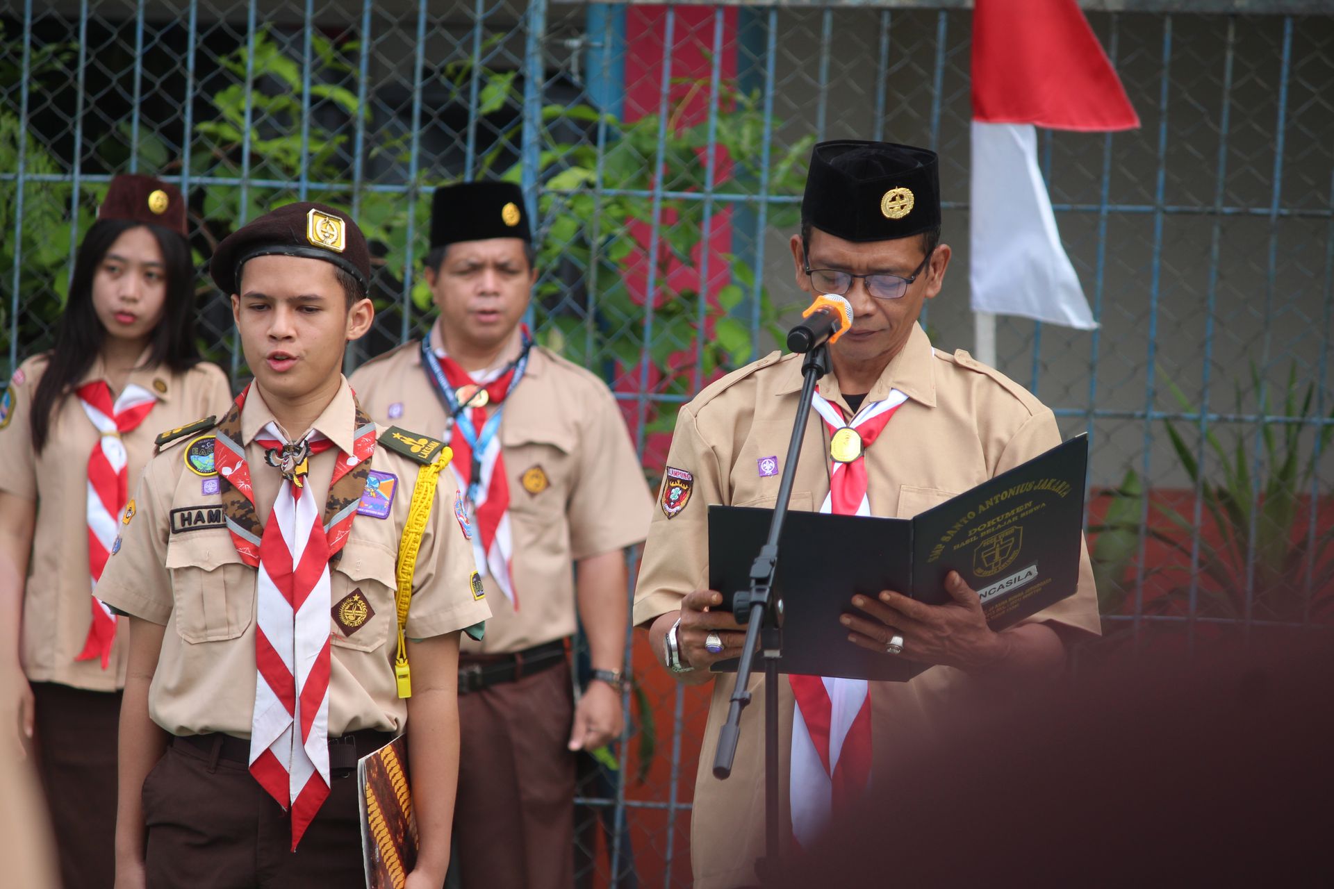 Usai sarapan, peserta dikumpulkan di halaman untuk mengikuti upacara pembukaan di lapangan SMP–SMA Santo Antonius sebelum berangkat menuju Buperta Cibubur. Upacara dipimpin oleh Bruder Tri Antara SCJ selaku ketua pembina, yang menegaskan kembali pentingnya nilai compassion sebagai semangat utama kegiatan hari itu.