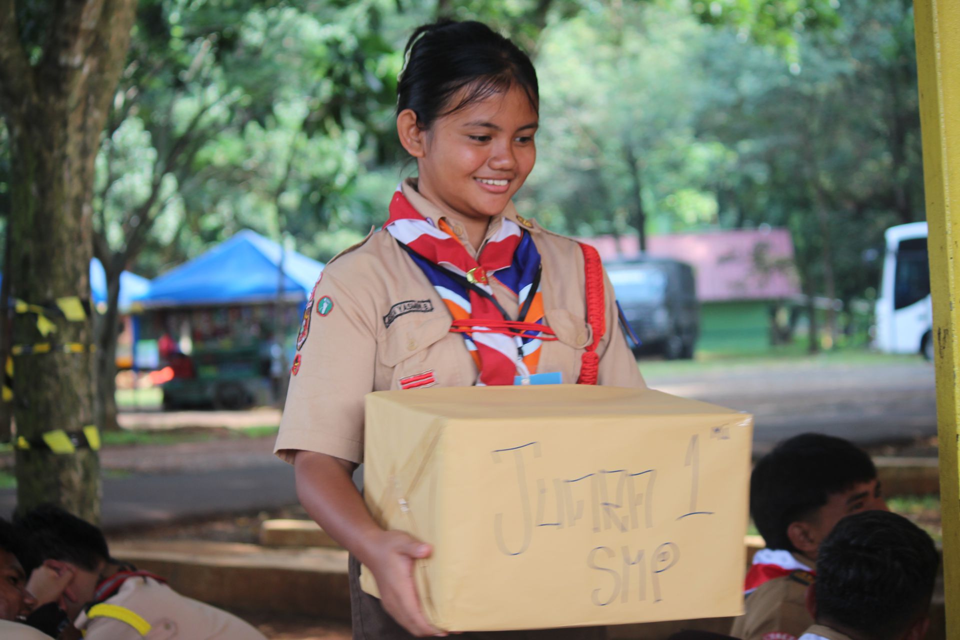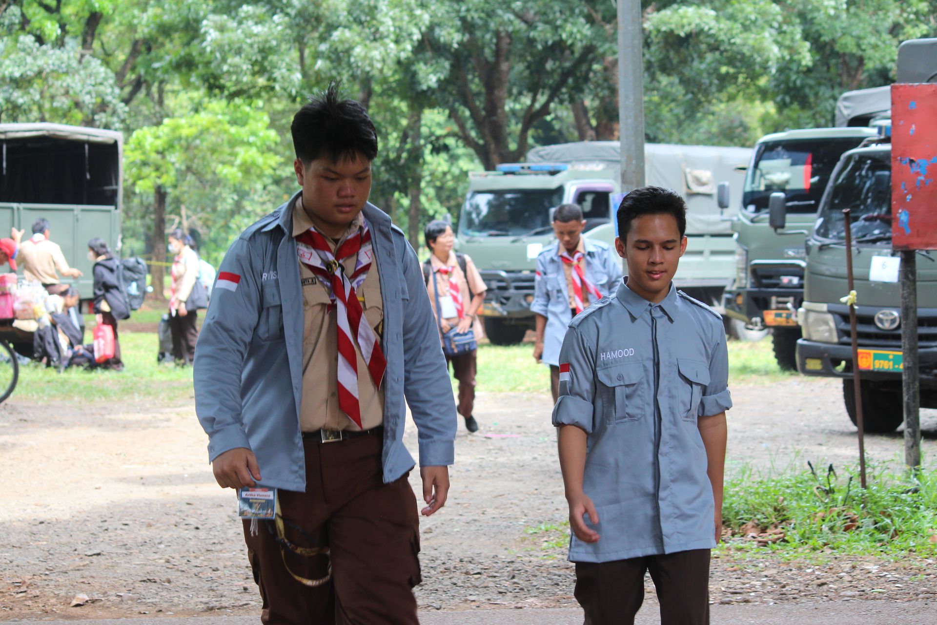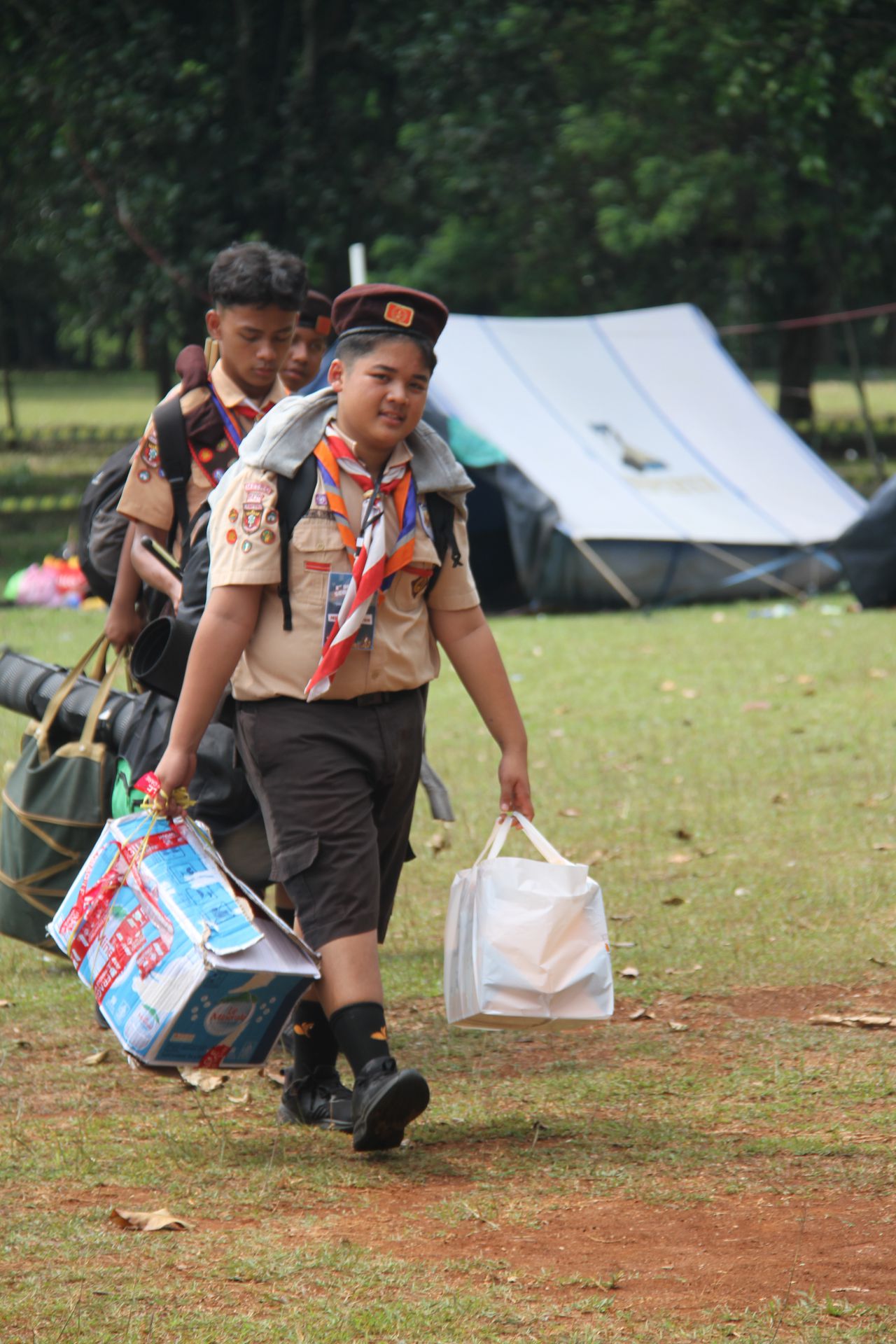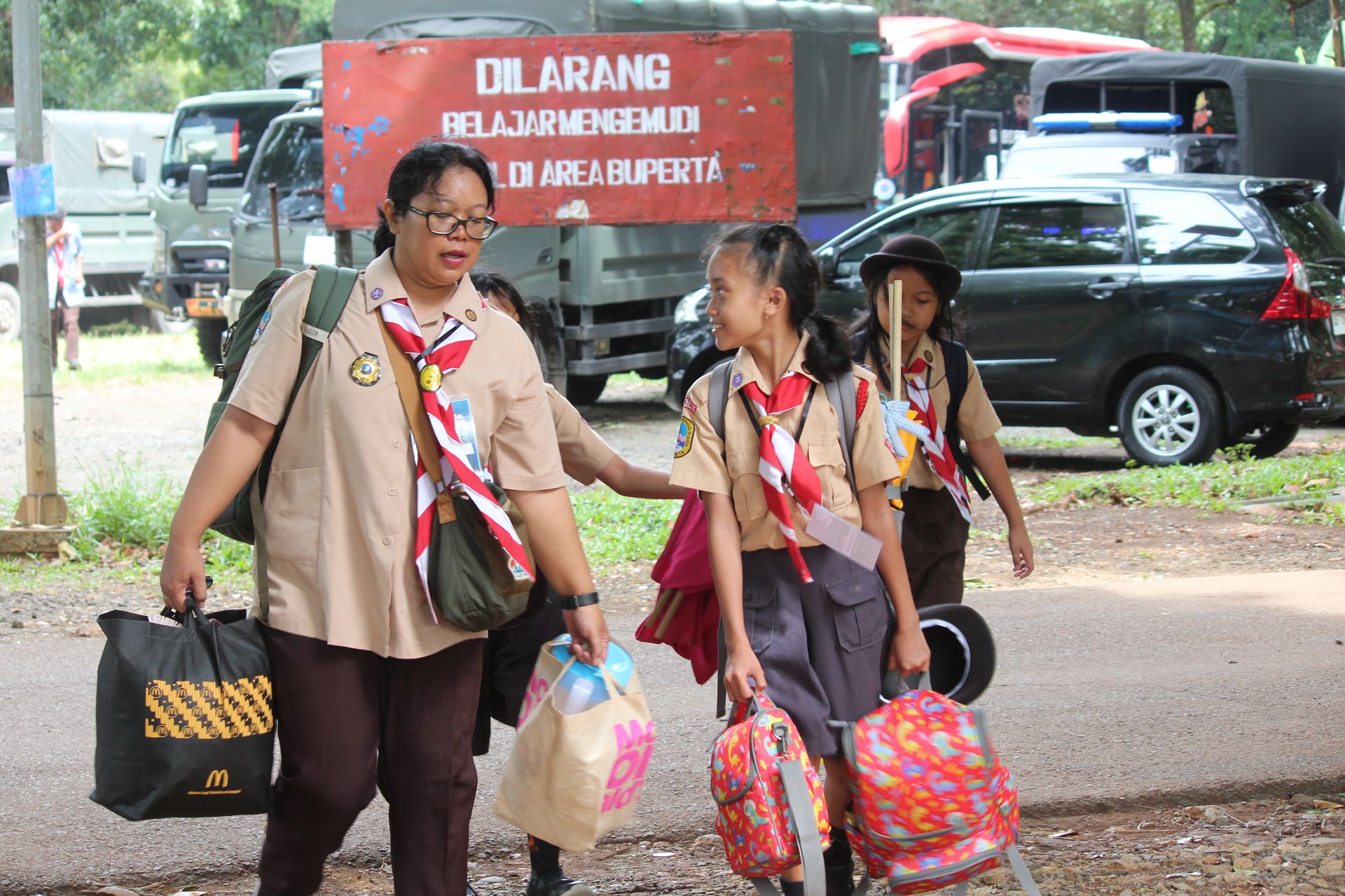 Setelah upacara selesai, para peserta kembali ke area masing-masing untuk mengambil barang. Mereka kemudian memasukkan perlengkapan ke dalam tronton sesuai arahan panitia. Proses keberangkatan diatur berdasarkan pembagian kendaraan sehingga seluruh peserta dapat berangkat dengan tertib menuju Buperta.