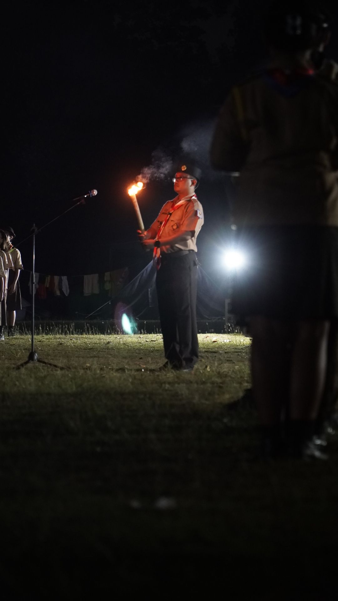 Setelah makan malam, peserta diarahkan mengikuti persiapan Upacara Api Unggun. Panitia menata area upacara dan memastikan seluruh perlengkapan tersedia. Para peserta pun mulai berkumpul dan bersiap mengikuti rangkaian acara yang merupakan salah satu momen puncak dalam kegiatan perkemahan.